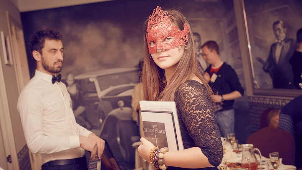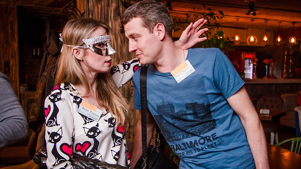Квесторія — це гра не проти кімнати, а один з одним. Ви граєте у команді, але у кожного — своя мета. Ведучий проведе гру де завгодно і з будь-якого приводу — на день народження, корпоратив або просто так.