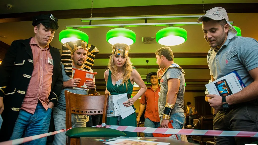 Квесторія — це гра не проти кімнати, а один з одним. Ви граєте у команді, але у кожного — своя мета. Ведучий проведе гру де завгодно і з будь-якого приводу — на день народження, корпоратив або просто так.